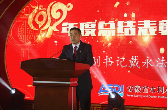 戴永法副院长主持总结表彰大会并宣读院2018年度表彰决定;程观富院长作2018年度工作总结,回顾盘点2018,激情展望2019,并向全体员工致以衷心的感谢和新春的祝福。张峰书记激励大家在新的一年以坚如磐石的信心、只争朝夕的劲头、坚忍不拔的毅力,一步一个脚印把水利设计工程持续推向前进。