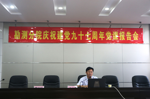 为庆祝建党九十七周年,7月3日下午,勘测分院党总支邀请蚌埠市委党校许如宝教授为勘测分院党员干部上党课,报告会由勘测分院副院长郭兴轩主持,分院领导、中层干部及全体党员近80人参加党课学习。
