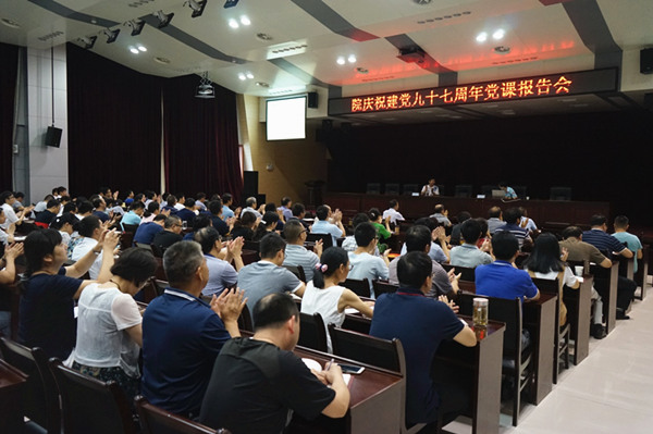 为纪念建党97周年,6月28日上午,院党委邀请安徽行政学院郝敬胜教授为党员干部集中上党课。报告会由院党委书记张峰主持,院内业中层以上干部、全体党员及离退休支部委员参加集中党课学习。