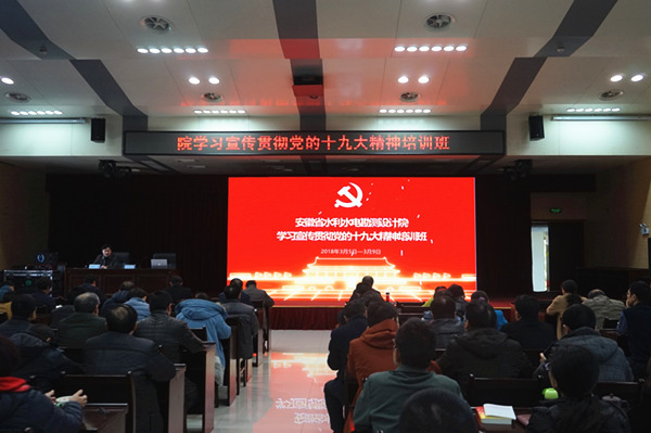 此次培训班采取个人自学与集中辅导、研讨相结合的形式,用了四天的时间对学习贯彻党的十九大精神进行系统辅导。邀请安大哲学系教授裴德海来院作辅导报告,党委副书记、副院长、纪委书记戴永法、副院长朱青、总规划师徐迎春,结合工作实际和个人学习体会带头上台讲课,他们分别作了题为《勇立新时代潮头为实现社会主义现代化强国而奋斗》、《以习近平新时代中国特色社会主义思想为统领 全面加强党的领导和党风廉政建设》、《不忘初心,砥砺前行——引江济淮台前幕后故事》和《学习十九大精神 探索水利规划设计新思路》的专题辅导,带领党员认真研读党的十九大报告和党章,学习习近平总书记系列重要讲话精神,引导广大干部深刻领会党的十九大主题,深刻领会把握党的十九大关于水利工作的新要求。