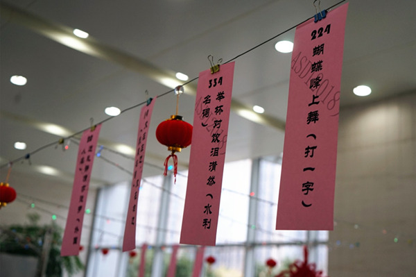 “朝园外隐约闻猿啼,星月小桥听箫声,打一节日,这是什么啊?哎呀!谁知道谁知道?”3月2日,我院一楼大厅举办猜灯谜闹元宵活动,为节日增添了浓厚的气息。