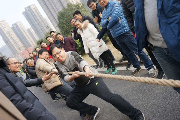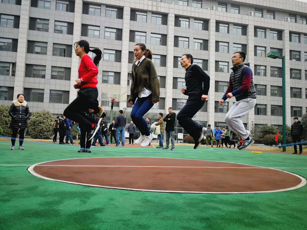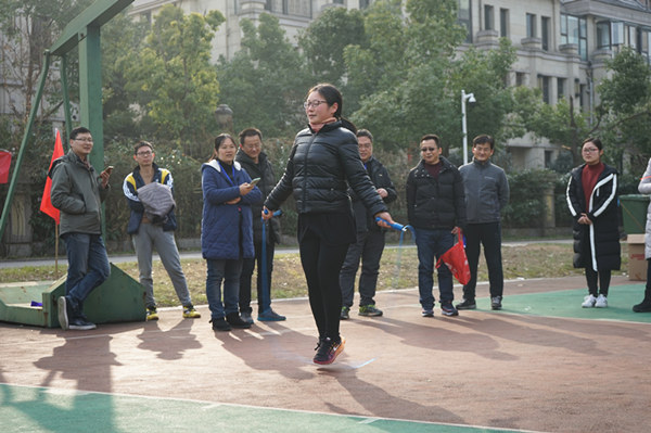 运动会分为定点投篮、跳大绳、健步走、绑腿接力、摸石过河、顶球跑、跳小绳和拔河8个比赛项目,由各处室组成12支队伍进行激烈的角逐。赛场上职工们大显身手,有的队伍以求稳为主,慢摇长绳,舞跳轻盈;有的队伍以快见长,将长绳甩得眼花缭乱;有的队伍,数着次数,踩着节奏强劲有力。接力和顶球更是妙趣横生,营造了和谐的氛围,为即将到来的新春佳节增添了喜庆的气氛,增强了员工的凝聚力和向心力。“稳住能赢!一二一二!”运动场上传来阵阵铿锵有力的口号,拔河是团队力量的比拼,场上选手们使出浑身解数往后拉,边上啦啦队声嘶力竭喊着“加油!加油!”,现场的热烈气氛将运动会推向高潮。
