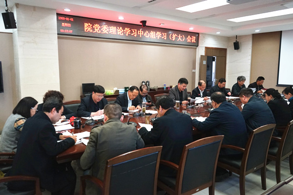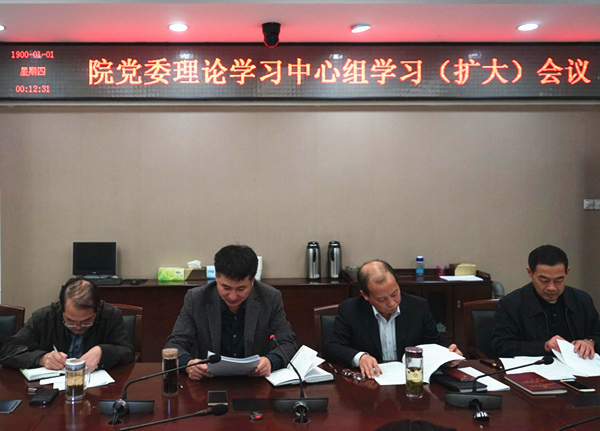 程观富院长和戴永法副院长分别传达了《党的十九大精神提纲》、《省委书记李锦斌在省委常委扩大会议中的讲话》,会议还集中学习了《省委常委扩大会议精神》、《水利部召开干部大会传达贯彻党的十九大精神》等,并按照《院党委中心组2017年度理论学习计划》,开展第九专题和第十专题学习。