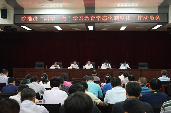 会议由程观富院长主持,党委副书记、副院长、纪委书记戴永法传达了《院推进“两学一做”学习教育常态化制度化的实施方案》及《院在推进“两学一做”学习教育常态化制度化中开展“讲政治、重规矩、作表率”专题教育的实施方案》的文件精神。