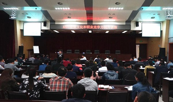 为庆祝中国共青团成立95周年、迎接五四青年节,院团委举办“企业文化和职业竞争力提升讲座”,邀请新安人才网首席培训师施晓菊主讲,讲座由院党委书记张峰主持。有17年不同类型企业人力资源管理经验、1000天内训经验的施晓菊女士的讲座从一个职场的“累”字开始,从职业竞争的发展明确学习力的重要,从什么是职业化到如何提高个人的职业竞争力,最后和青年员工交流职业生涯管理的重要性,努力做到“在职,一座山,离职,一座碑”,热情的掌声和欢笑时时传来,轻松的游戏和互动贯穿讲座始终。