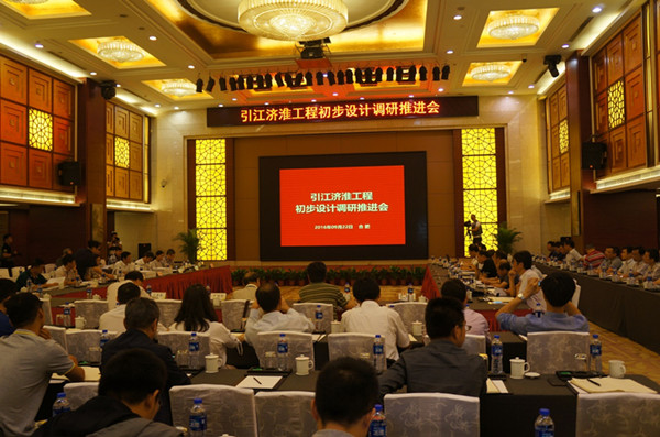 为加快推进引江济淮工程初步设计及审查工作,9月21~22日,水利部水利水电规划设计总院(简称水规总院)在合肥主持召开了引江济淮工程初步设计调研推进会。会议听取了我院关于引江济淮工程初设主要成果以及可研评估后修改情况的汇报,并就近期有关工作进行了研商和部署。