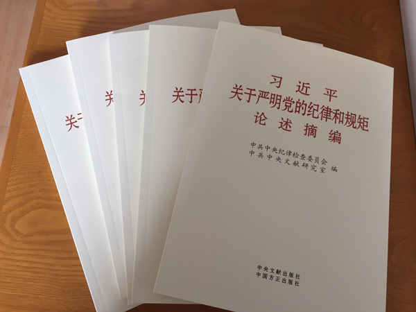 根据厅转发的《关于开展学习<习近平关于严明党的纪律和规矩论述摘编>的通知》,院党委、院纪委安排部署在全院范围内开展学习活动。在扎实开展《中国共产党廉洁自律准则》和《中国共产党纪律处分条例》学习活动的基础上,订购了200余本《习近平关于严明党的纪律和规矩论述摘编》,发至全体党员手中。