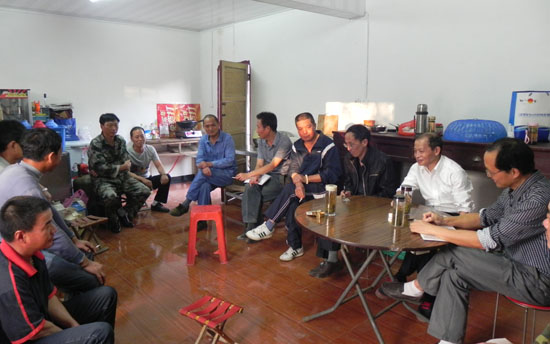 程院长在勘探驻地与外业员工交谈