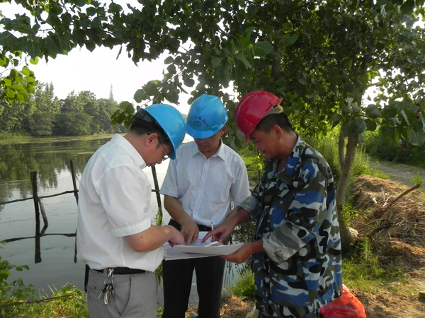 检查组每到一处,都会深入到外业工地的作业现场和生活环境中,检查外业工地的三体系管理要求的执行情况,对外业作业及已取得的过程资料进行现场检查和技术指导。在此次检查中也发现了一些问题,如:某些项目资源配备欠缺,技术力量有些薄弱;勘测策划不够全面,现场试验记录不够规范;安全防护意识还不够强,个别员工天热赤膊作业形象不雅等。在保证勘测质量的同时,检查组强调了安全生产及钻孔回填的重要性,特别是高温作业、雷雨天气、水上勘测、装卸搬迁、用电用气等方面的安全;钻孔回填方面无论是堤内、堤外还是湿地治理,都必须回填捣实。