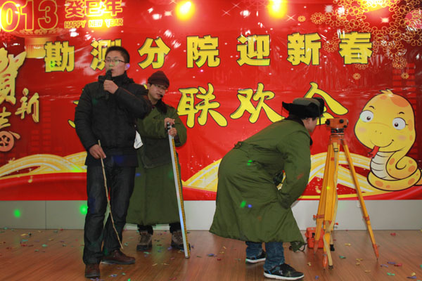 “金龙含珠辞旧岁,银蛇吐宝贺新春”。2013年2月1日下午,勘测分院2013年迎新春文艺联欢会在分院五楼会议室隆重举行,分院职工200余人欢聚一堂,喜迎新年。